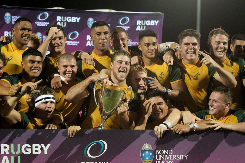 Aussies celebrate 2019 win May 6, 2019 3600 × 2400 Junior Wallabies Win the Spoils Ahead of the U20 Championships In Argentina Junior Wallabies with the trophy. Photo courtesy of Oceania Rugby